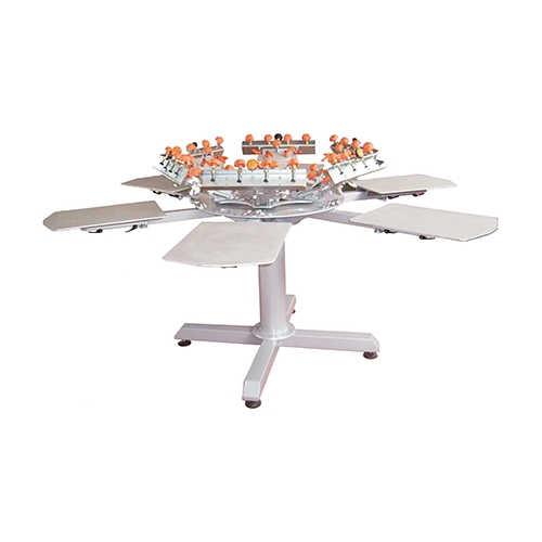 Máquina impresora carrusel IMT-R6, para imprimir textiles con hasta seis colores. Esta máquina de serigrafía o pulpo serigrafía ha sido creada para obtener un resultado de impresión perfecto y facilitar su uso a cualquier persona sin previa experiencia.