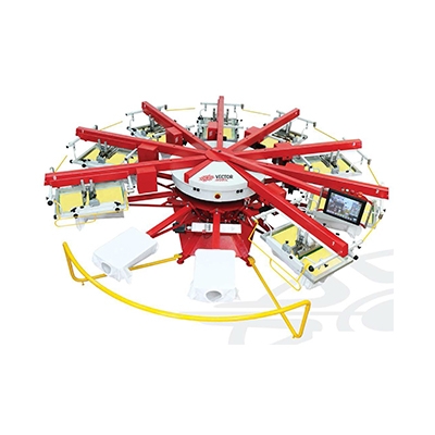 La prensa de serigrafía Vector XL está disponible desde 6 hasta 18 colores y está cargada con las características que necesita para hacer sus trabajos más grandes.