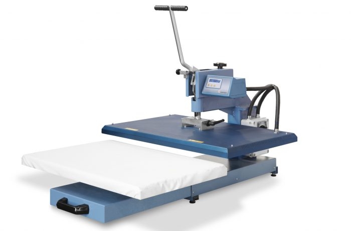 Prensa en caliente de funcionamiento manual con apertura de cajón. Placa térmica superior inclinable para obtener una presión constante entre las dos placas. Regulación electrónica de tiempo y temperatura. Plato intercambiable de diferentes tamaños.